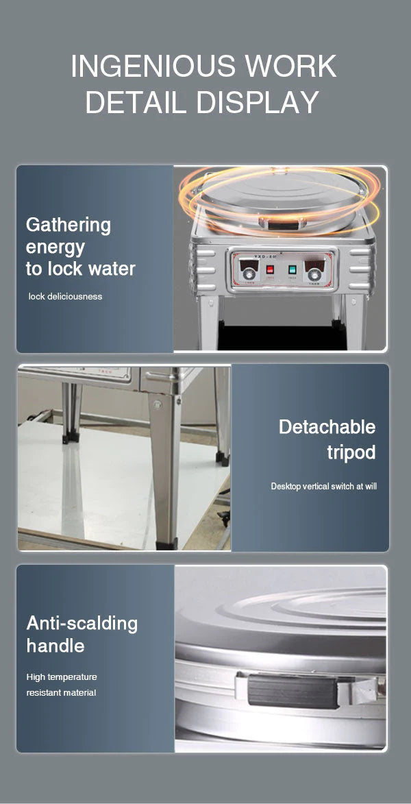 2.Save fuel. The electric baking pan does not stick to the food, it is easy to demould, and no cooking oil is needed for demoulding, which reduces the production cost.